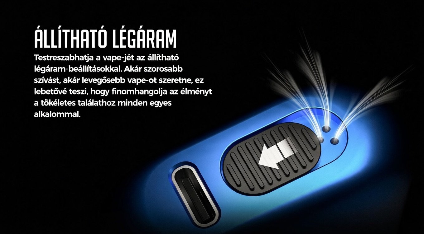 A készülék 50 mg/ml (5%) nikotint tartalmaz, erőteljes és sima élményt biztosítva.