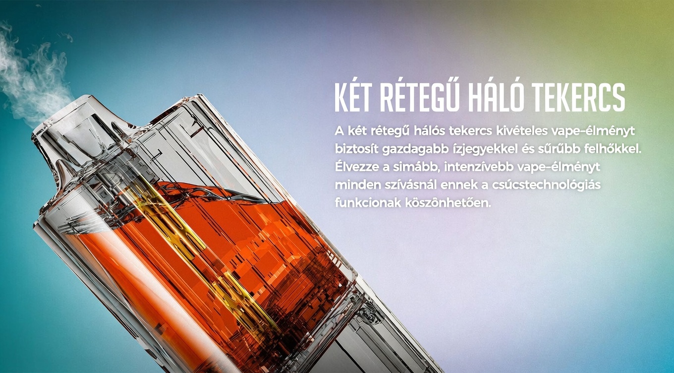 Kettős mesh coil (1.2Ω) gondoskodik a gyors hevítésről és a tiszta, intenzív ízekről.